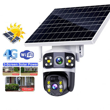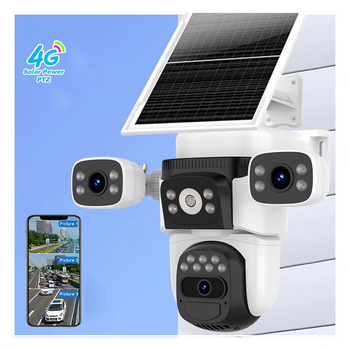 4MP屋外10Xズーム3レンズソーラーパワーワイヤレスサーベールCCTV PTZカメラセキュリティ4G SIMカードソーラーカメラ